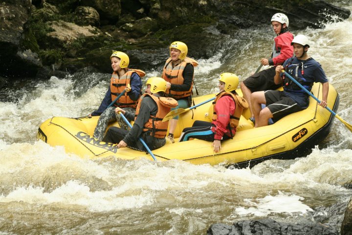 bote inflável: bote de borracha ou plástico de alta resistência que pode ser esvaziado para facilitar o transporte e inflado com ar para sua utilização efetivo